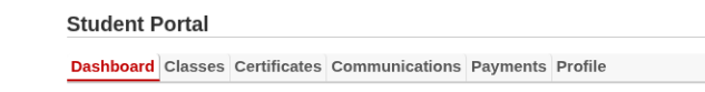 Once they log in they will then see their portal with their Dashboard, classes, certificates, communications, payments and profile