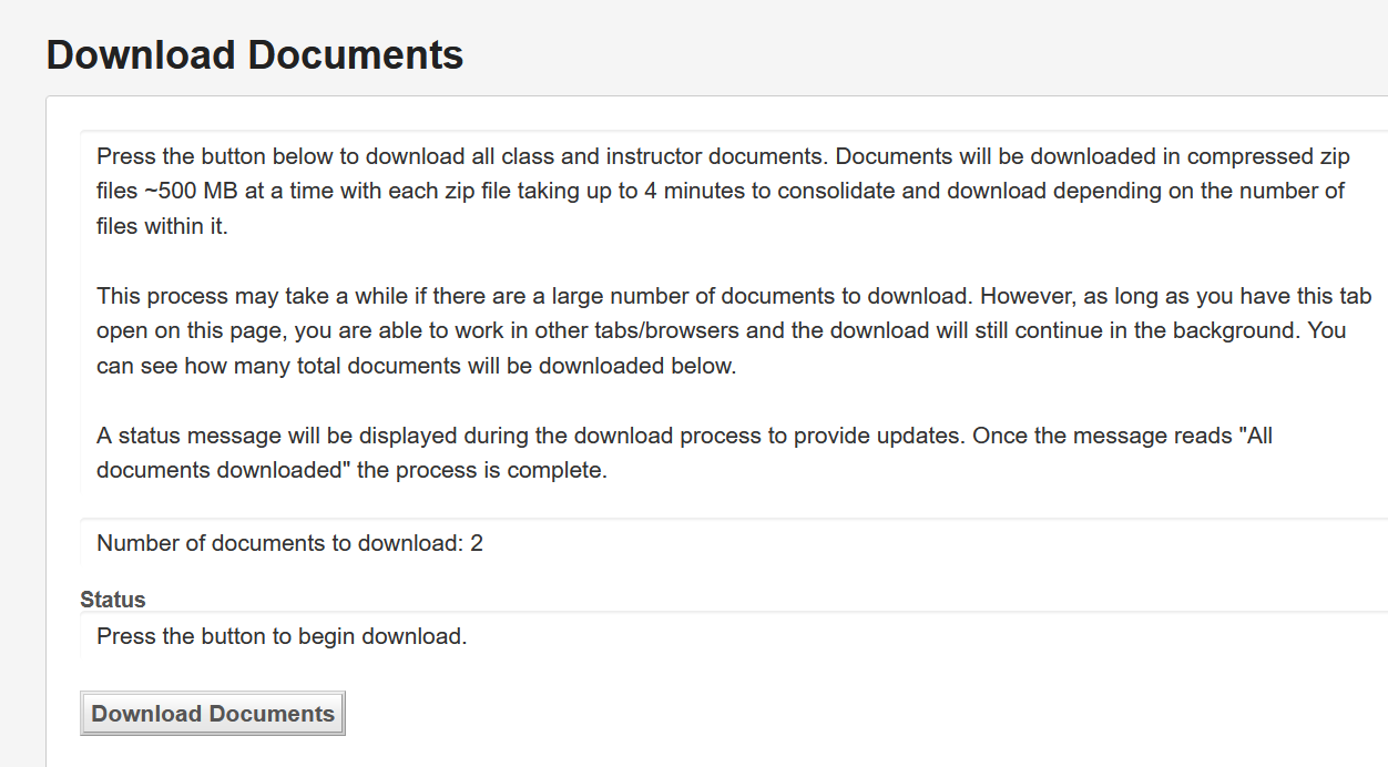 It will take you to another screen where you can see how many documents you will download and then Select the Download Documents button to start.