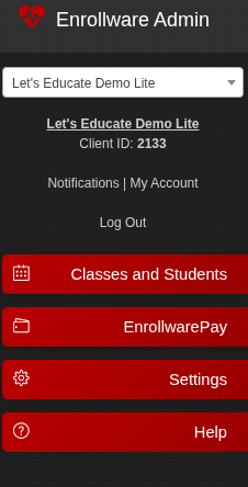 - Help- can assist you in finding help documents, contact support, see what's new with enrollware and the quick start guide
