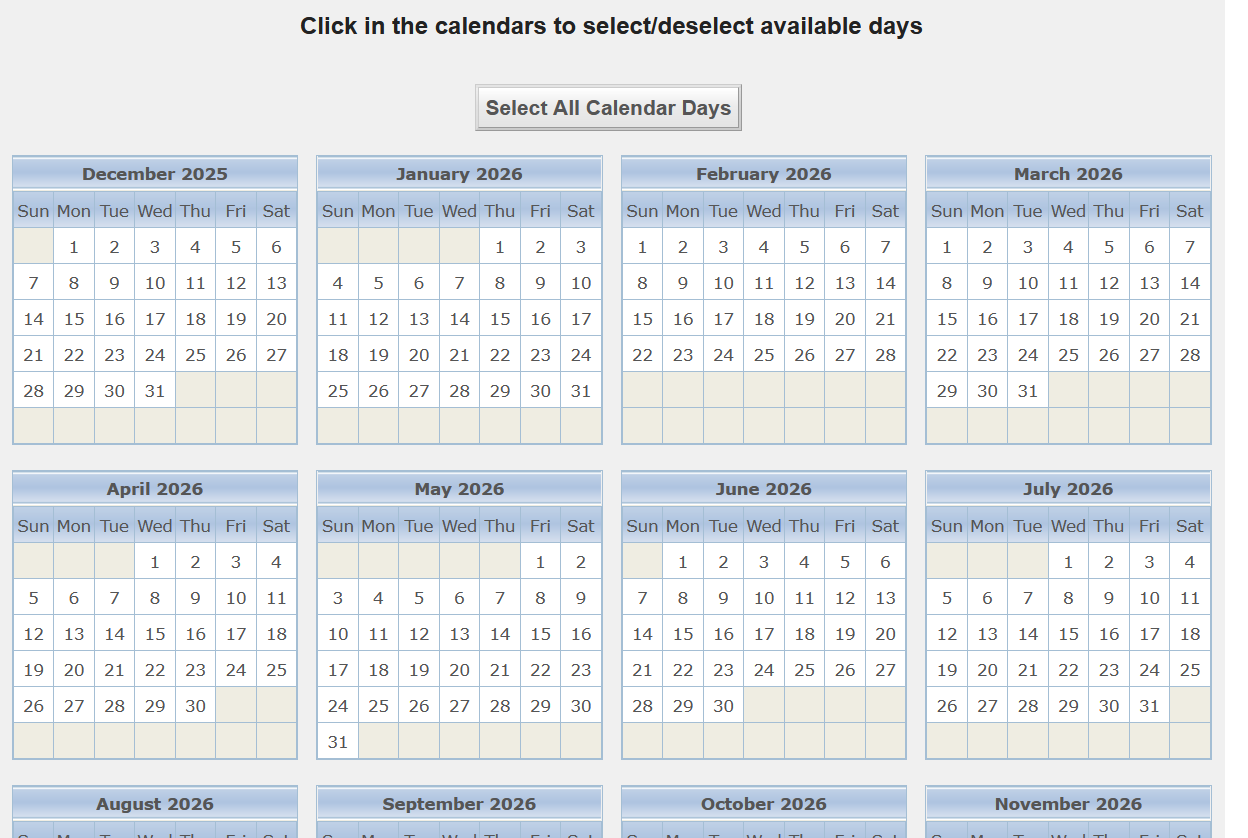 Once the options are set up, the final step is to select the dates for the Appointments. The option to select all dates is also available. Once satisfied, select "Create Appointment".