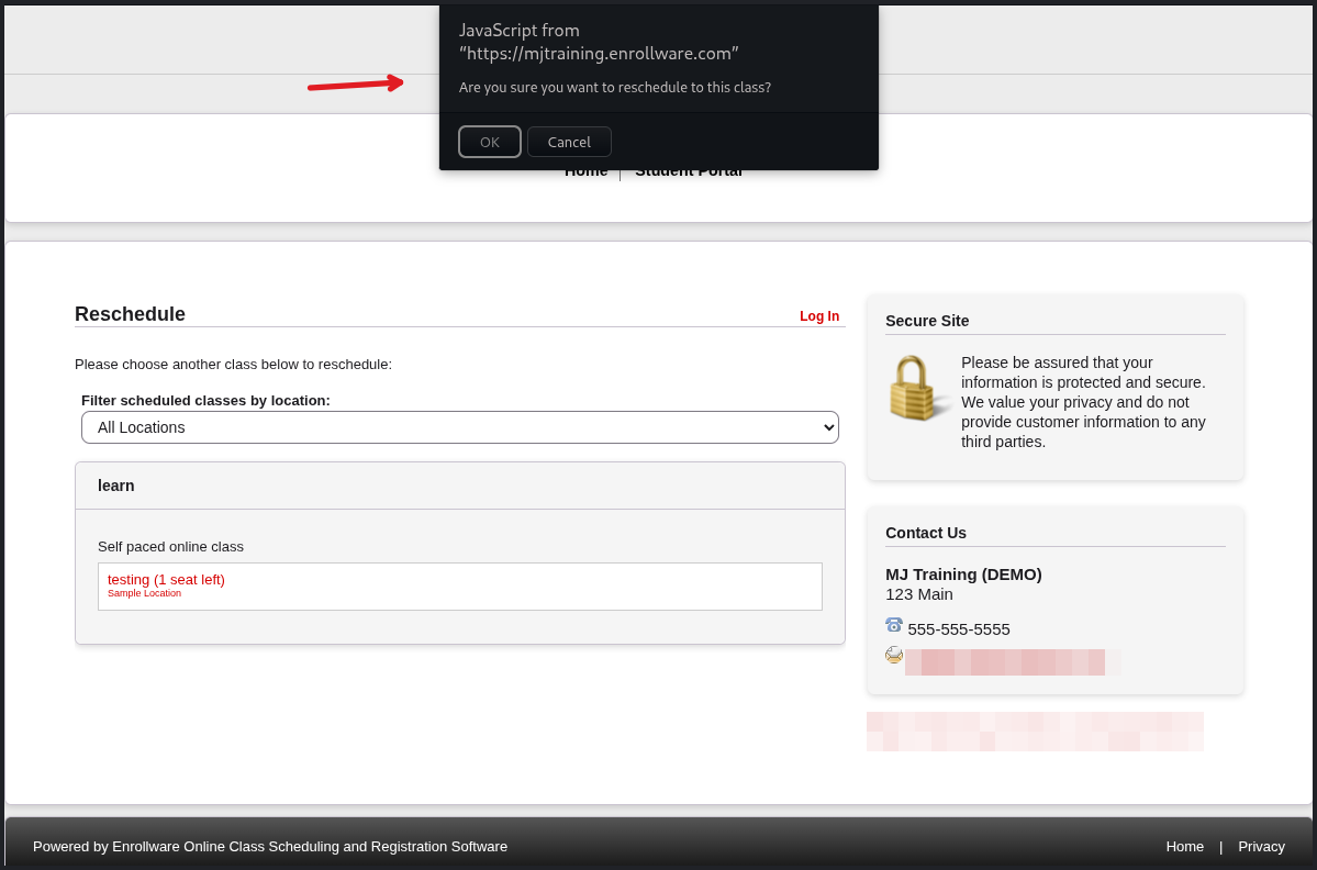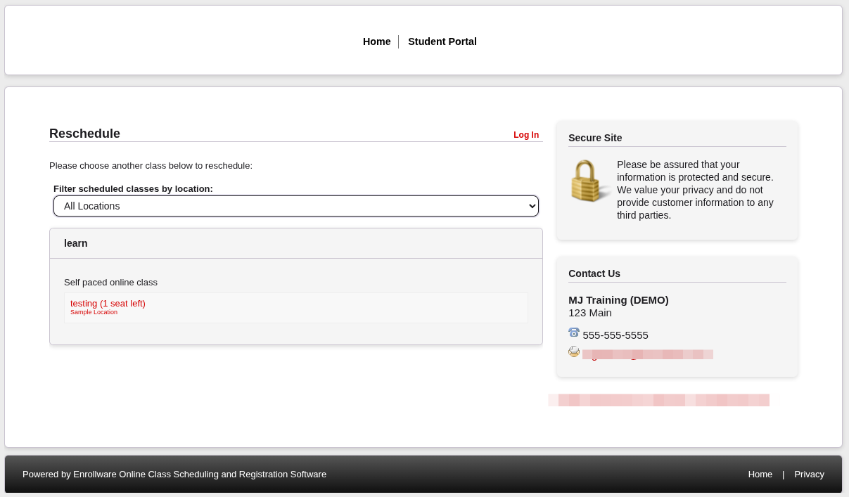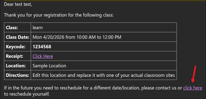 When the link is selected they will be taken to the reschedule portal where they can look for another class.